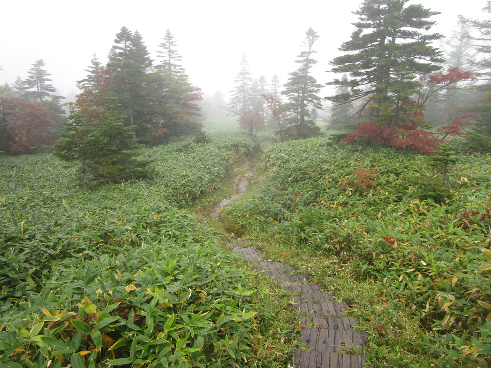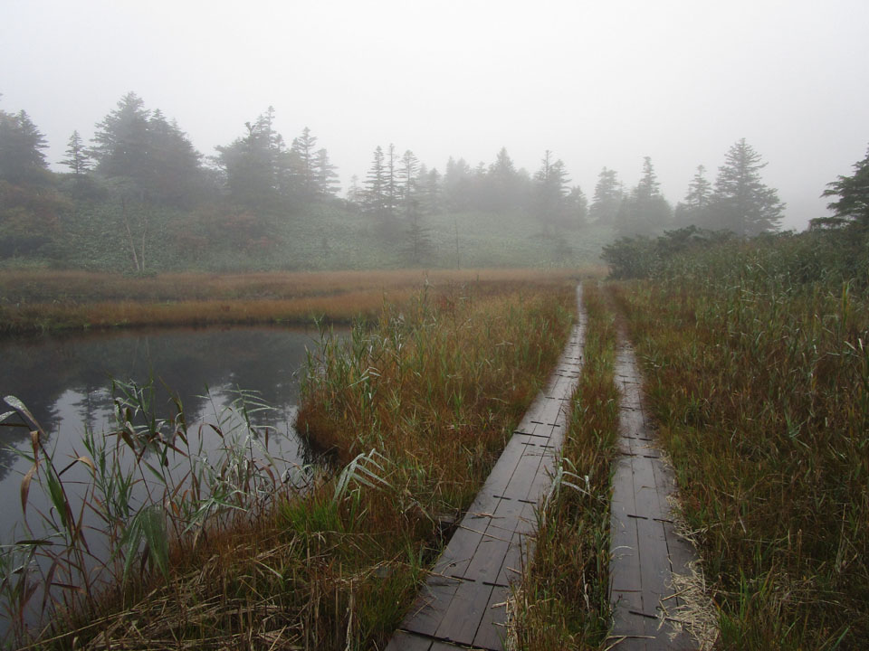 木道が滑りやすく注意。