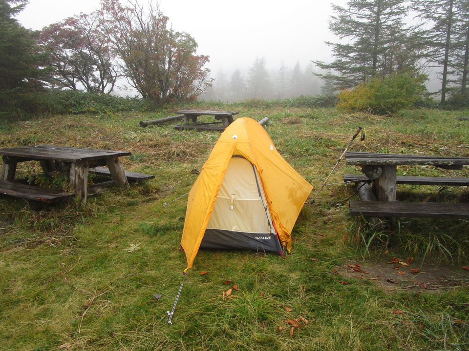 今日は天気も悪く、僕だけの設営である。非常に快適。