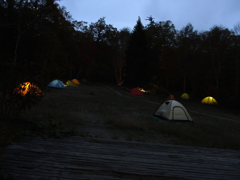 テントは15張り程度。この天気でも結構多い。平日なのにな。