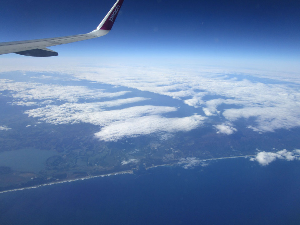 東側を向く席では、羽田便ならともなく成田便だと海しか見えないのである。