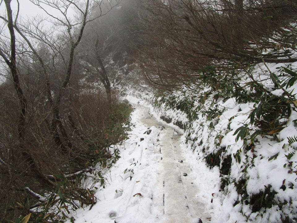 帰りも雪道は慎重に。アイゼンは持参したが使わなかった。