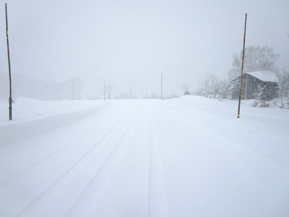 今日は冬型がやや弱まっているため、吹雪が弱くなっている。