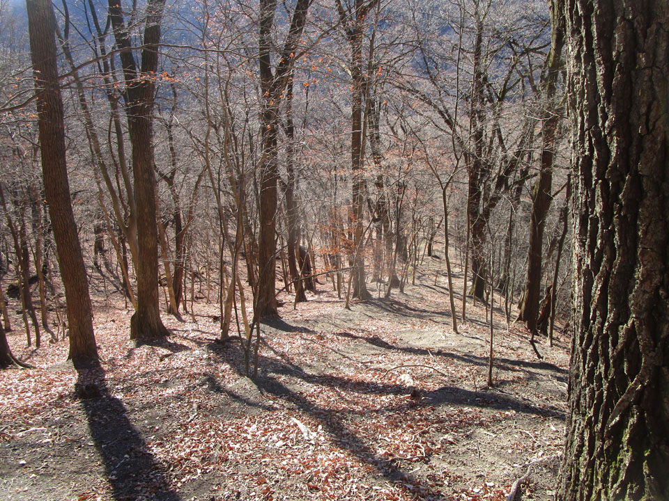 途中からふみ跡がなくなり急斜面を直登するが、これは東側にまくのが良さそう。