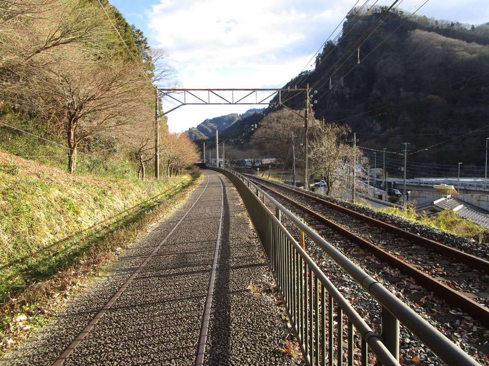 峠の湯から先は、信越本線の旧線跡になる。途中で中山道への分岐も作られている。