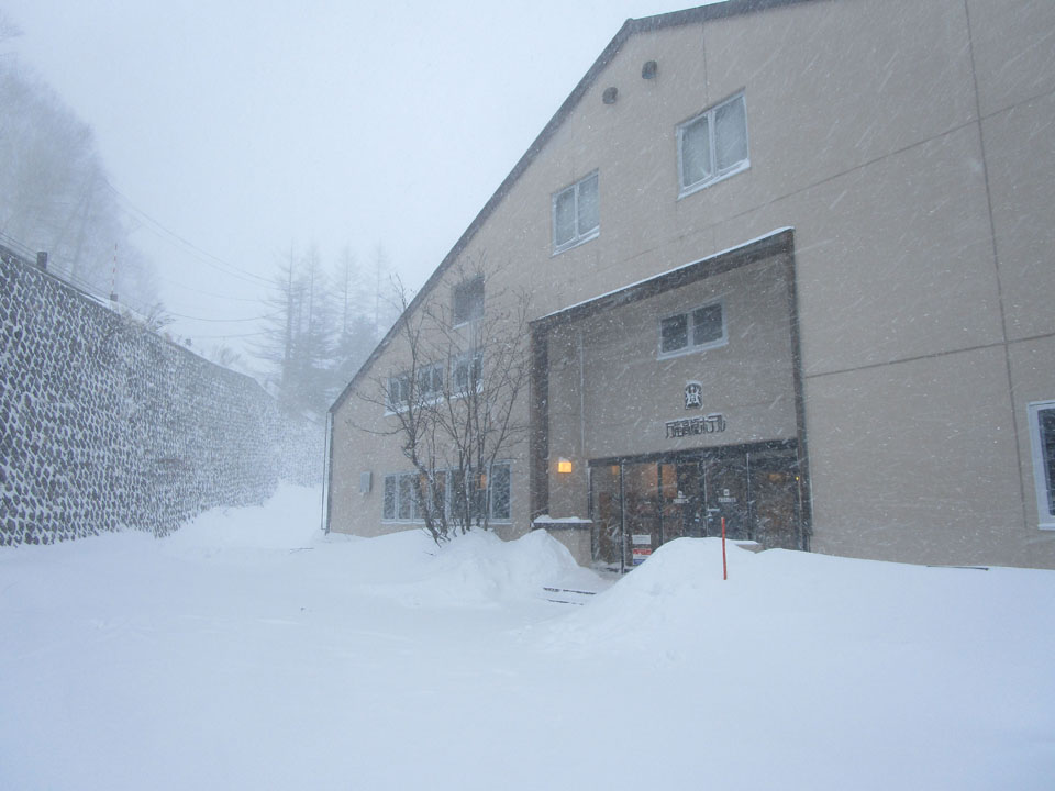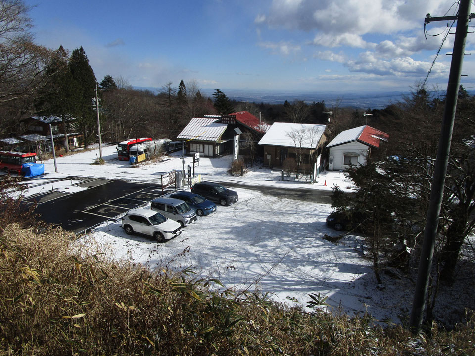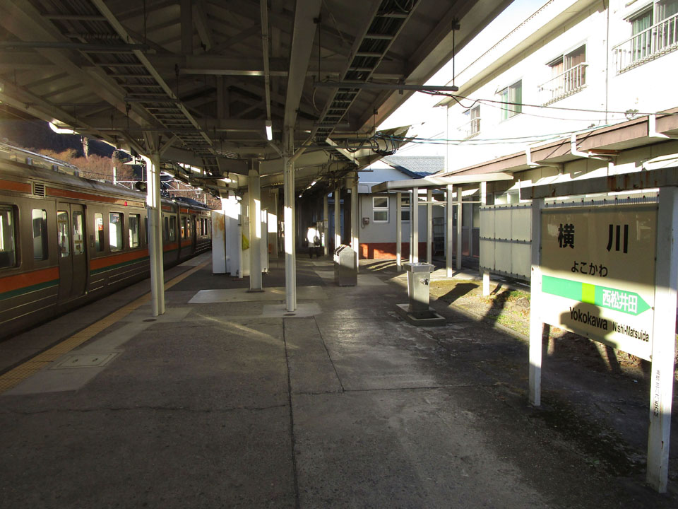 冬型が強く、横川駅でも雪がちらついている。正面の雲は冬型の雲だ。