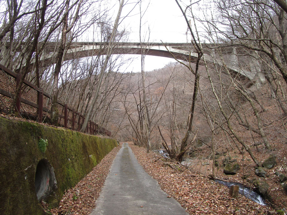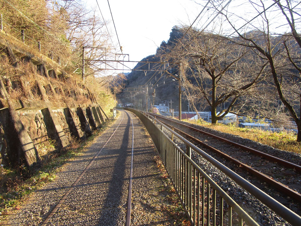 峠の湯から先は、信越本線の旧線跡になる。途中で中山道への分岐も作られている。