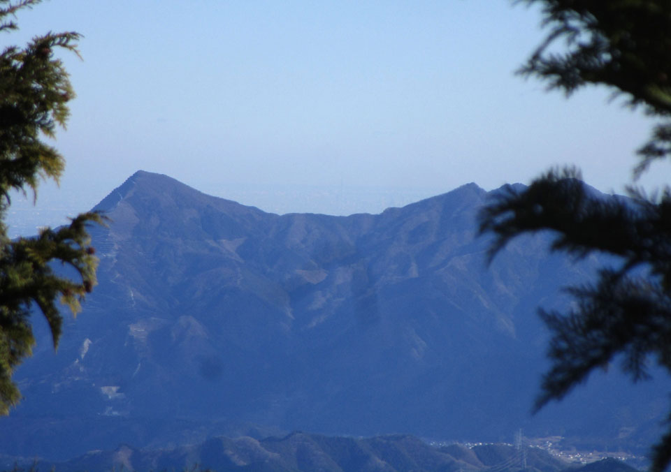 武甲山の奥には、東京スカイツリーが見える。