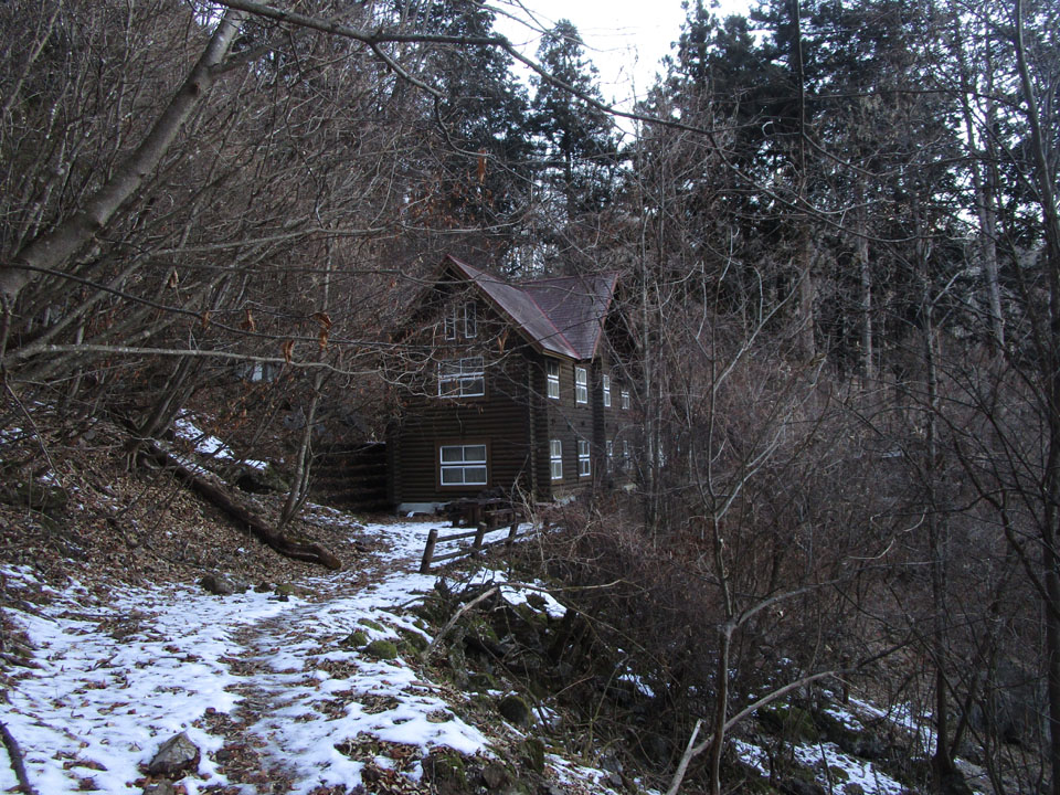 小屋までには、途中、1か所、ベンチなどがある休憩ポイントがある。