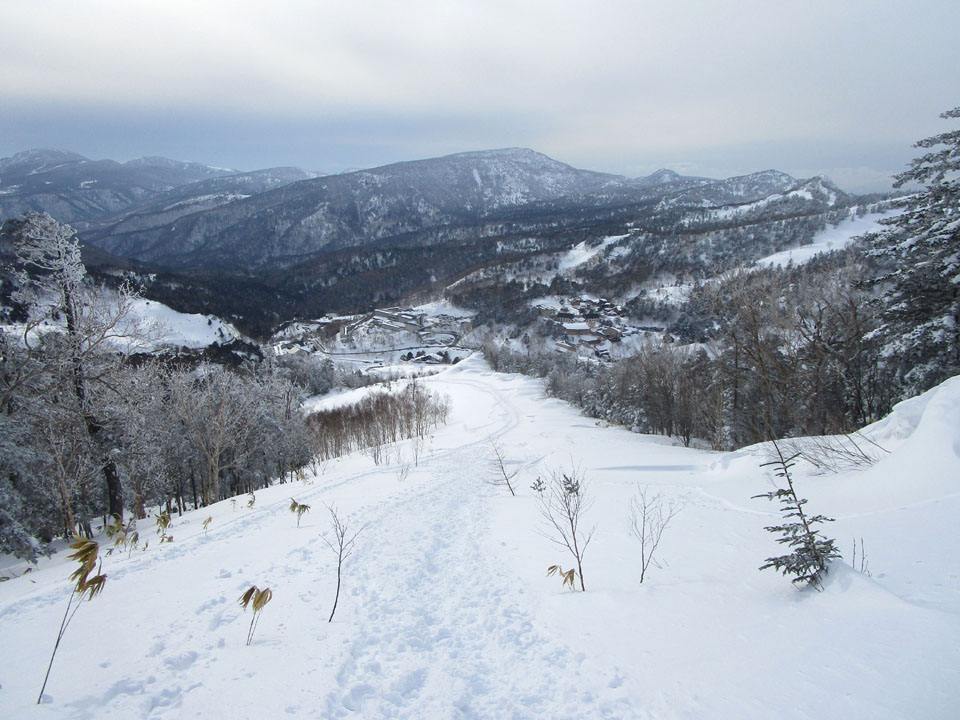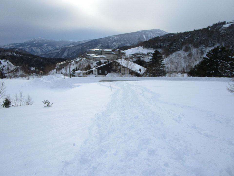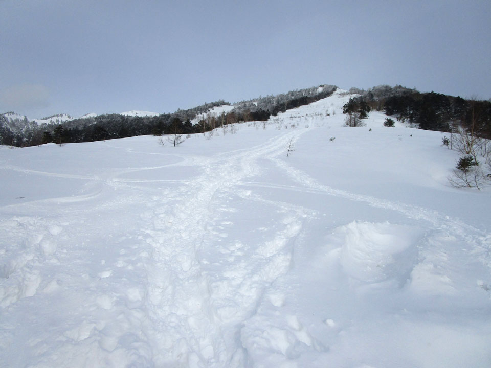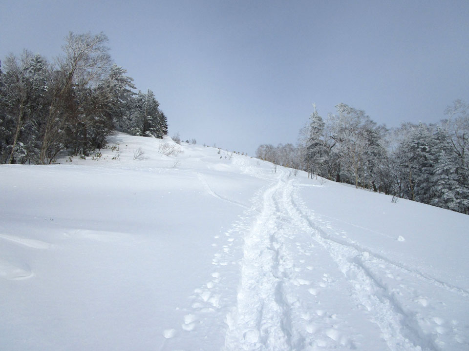 朝日山ゲレンデ跡地はトレースがある。