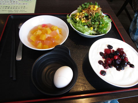 朝食はバイキングである。