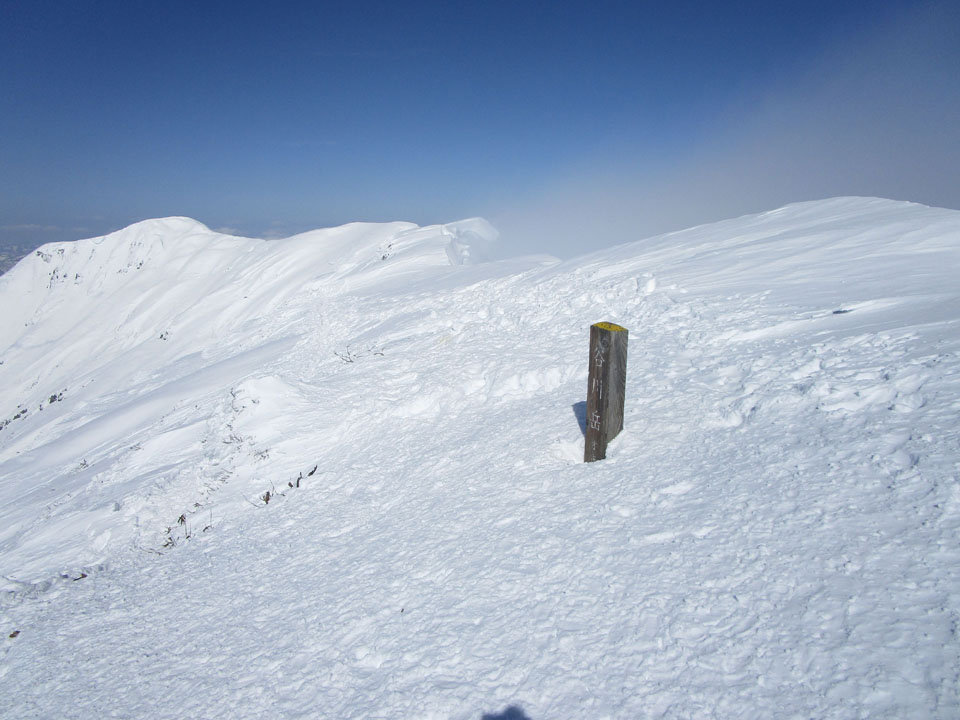 頂上はガスっている。下りは順調。