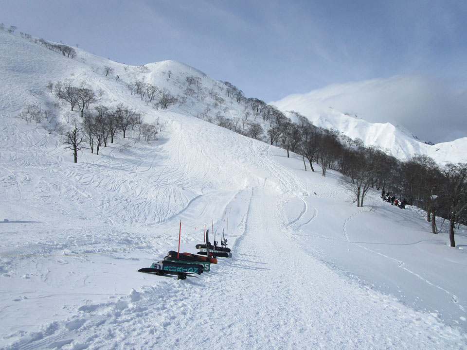 ロープウェイ営業開始が8時半からだったため、ラッセル先頭はかなり先まで進んでいる。