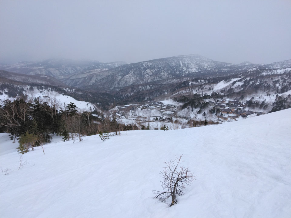 朝日山ゲレンデ跡地はトレースがある。
