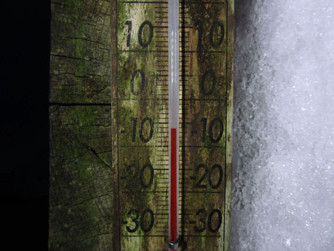 最低気温は‐6℃、室内で0℃程度と思われる(室内の水は凍らず)。