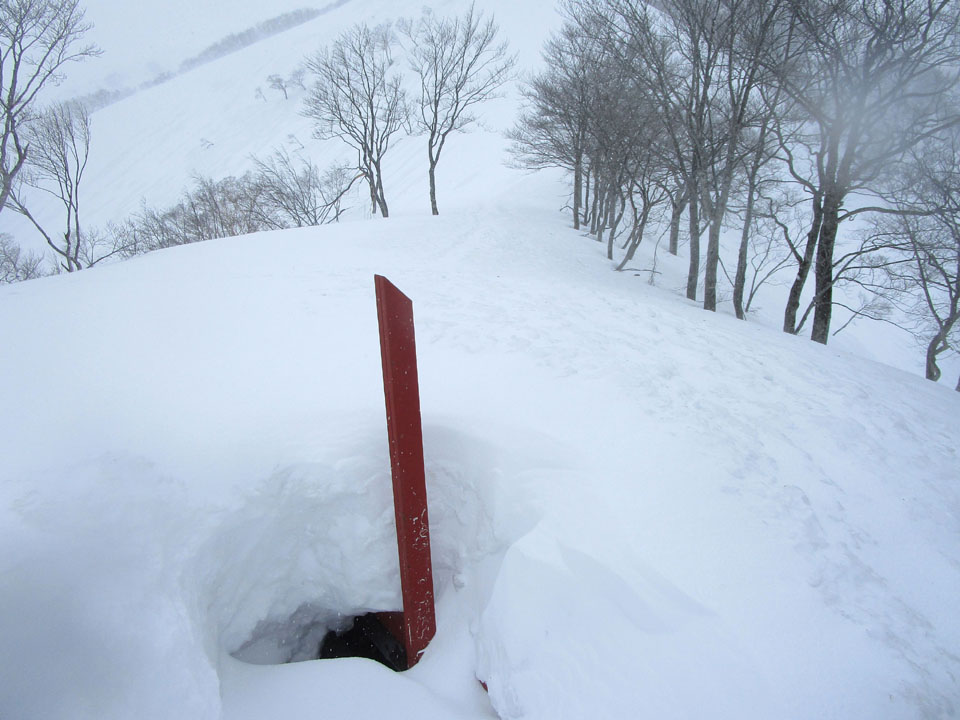 100cmくらいまでなら途中の熊穴沢避難小屋が利用可能で、
