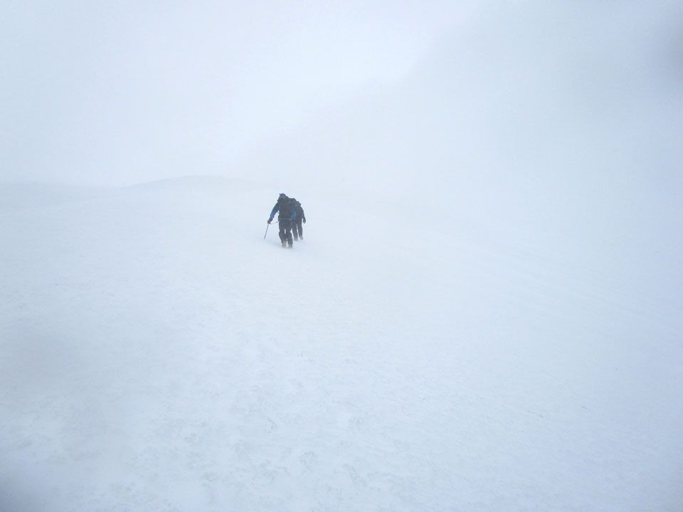 暴風雪になり視界5mくらいになってく。