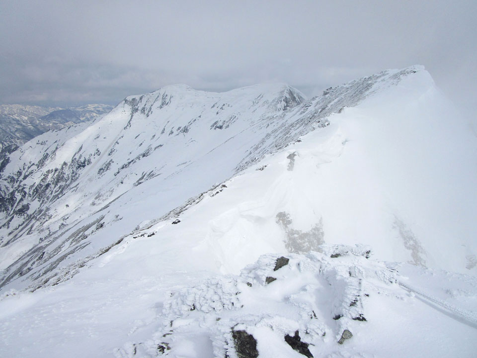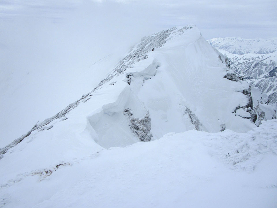 雪が硬く、滑落に注意。