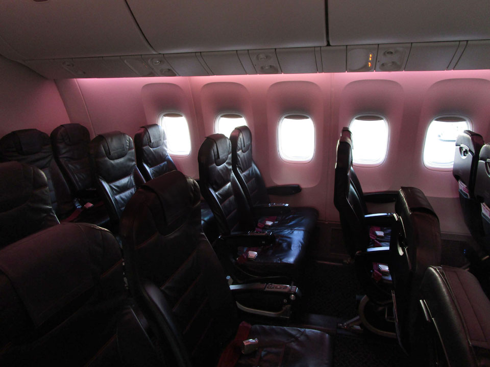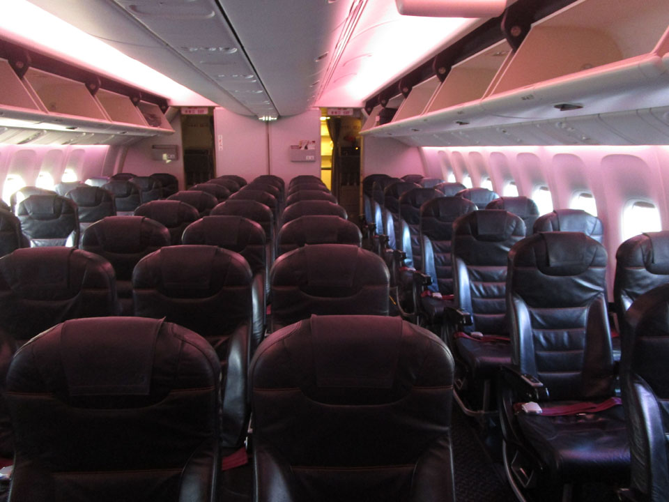 普段はB737-800のイメージだが、今日は機材運用の都合か、B767-300だ。このため空いている。