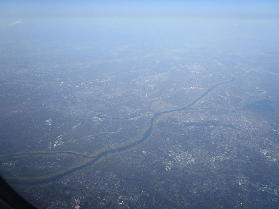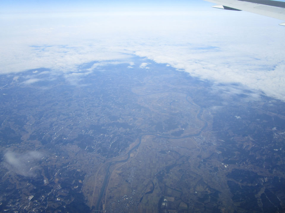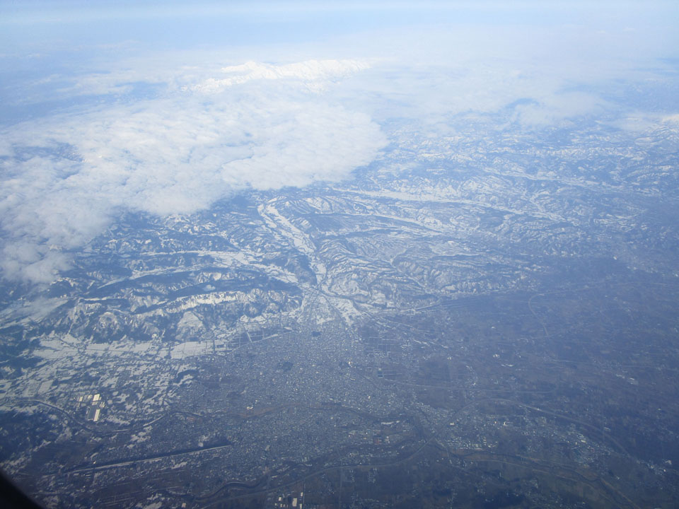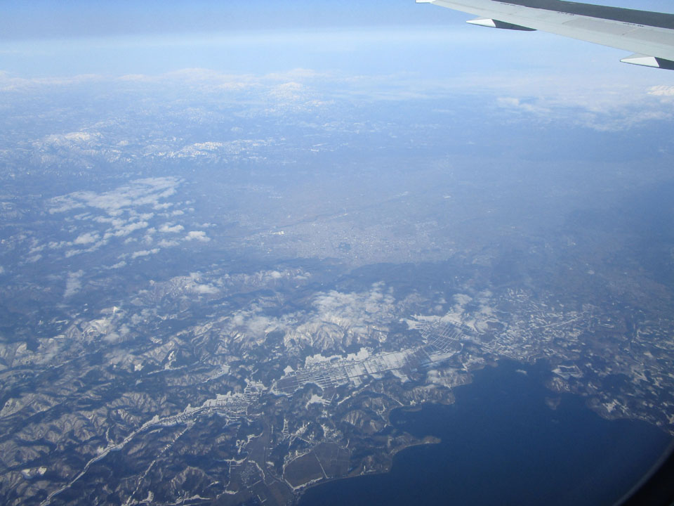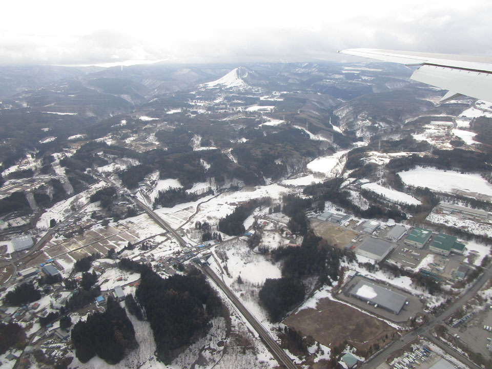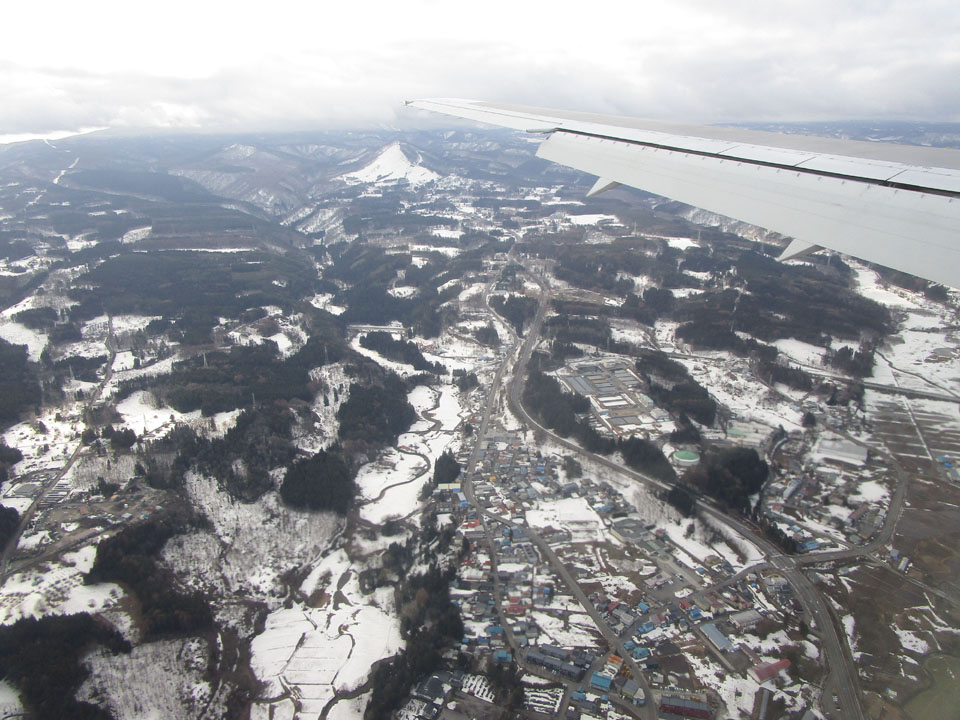 青森空港へはILSアプローチなので、いったん空港直上を通り、青森市の沖合に出て、空港へ直線で進入する。
