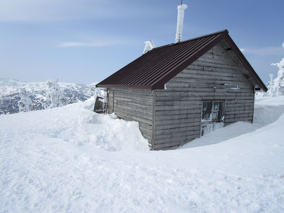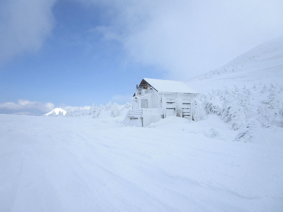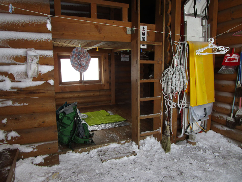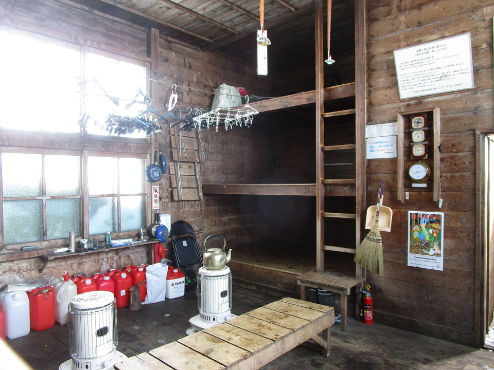 避難小屋が見えてきた。大岳鞍部避難小屋。