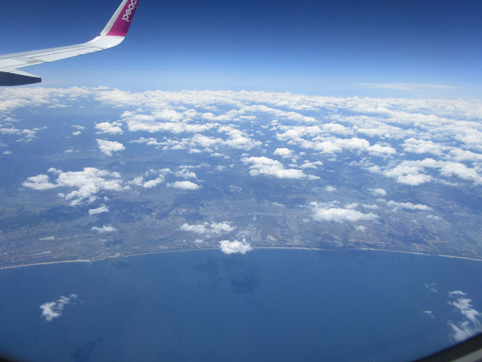 東側を向く席では、羽田便ならともなく成田便だと海しか見えないのである。