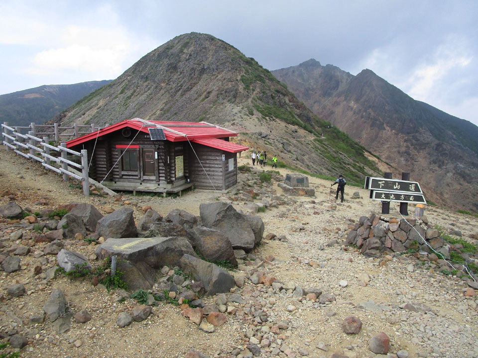峰の茶屋避難小屋に荷物をデポしてあるので、避難小屋経由だ。