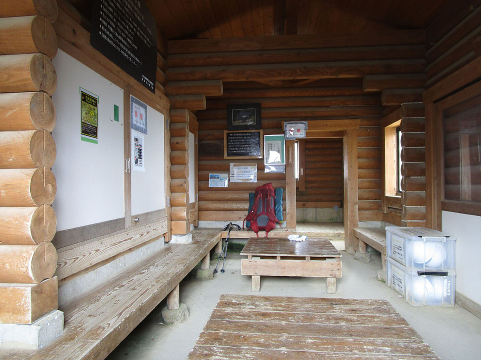 峰の茶屋避難小屋は快適そうだが、残念ながら宿泊禁止である。