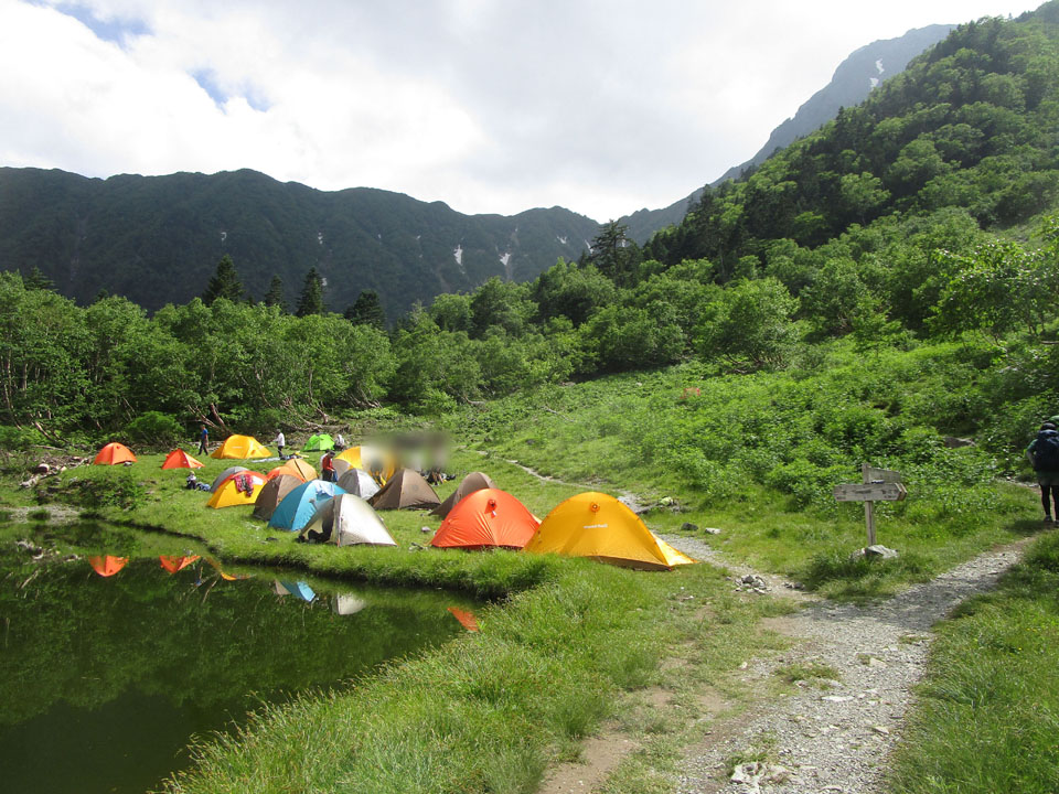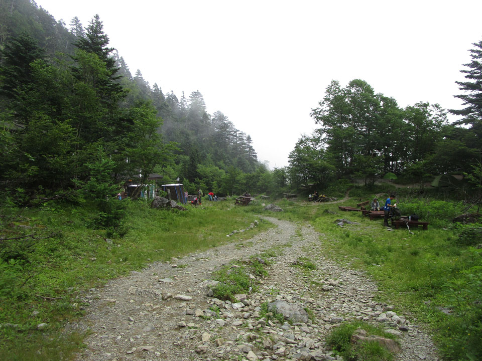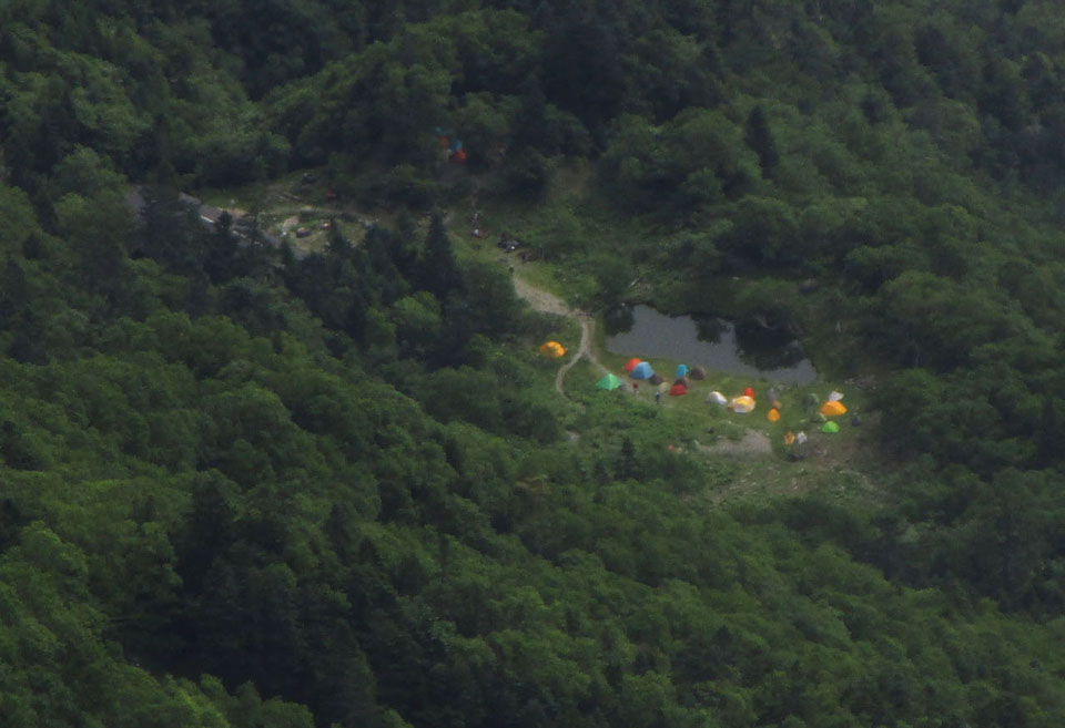 御池小屋。テントが多い。
