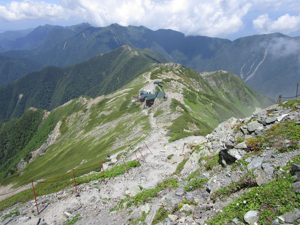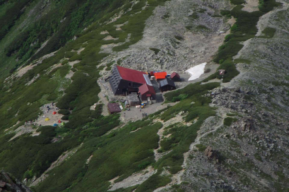 北岳山荘が見える。