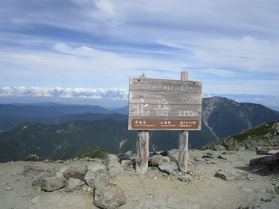 日本2位の高峰、南アルプスの最高峰で、100名山指定。