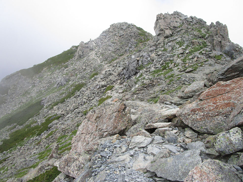 2700m付近で森林限界。2750m付近で大樺沢二俣からのルートに合流。