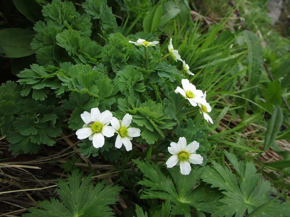 テント場の近くには、キタダケソウが移植されている。