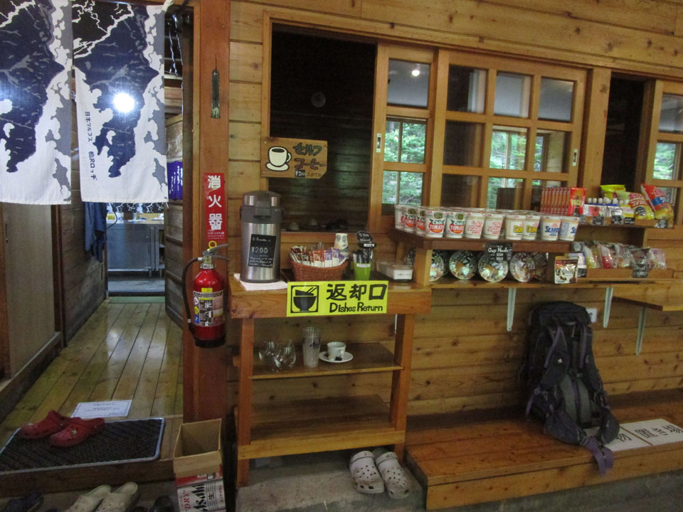 穂高平小屋ではペットボトルなどを売っている。貴重な中継地点。