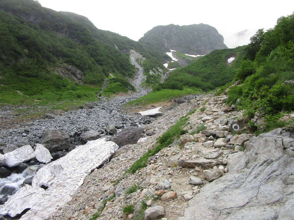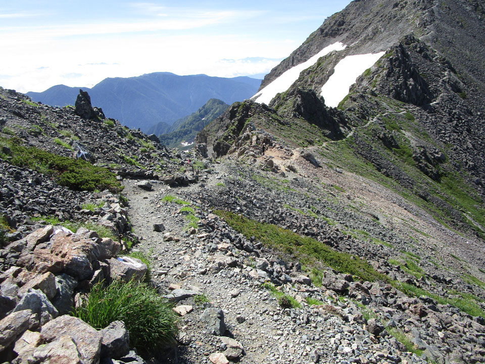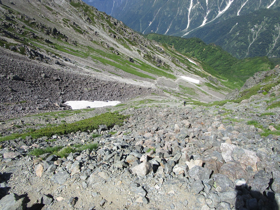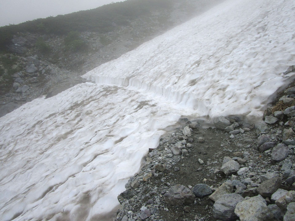 途中は合計3カ所ほど雪渓を横断することになる。