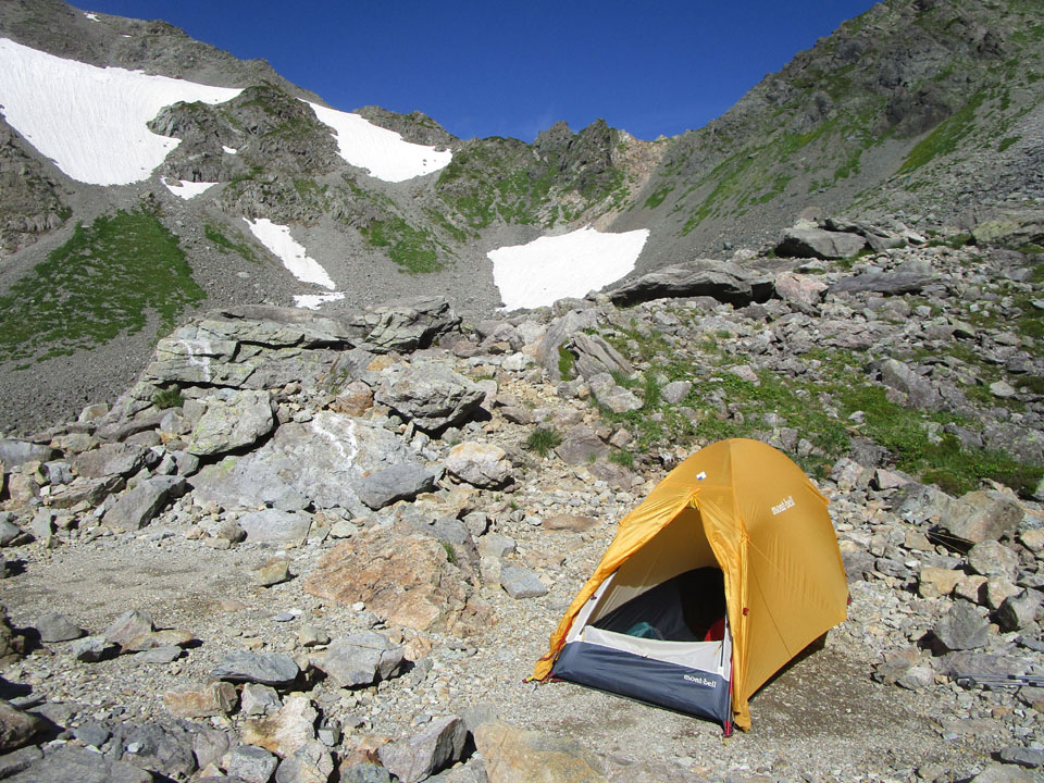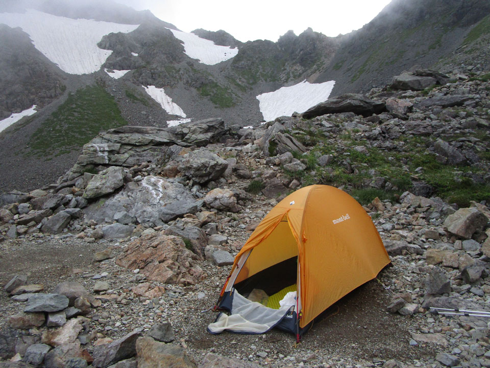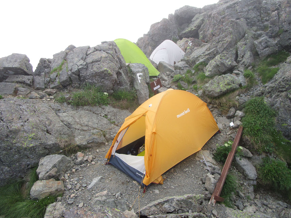 ババ平のテント場。雨はやんだ。