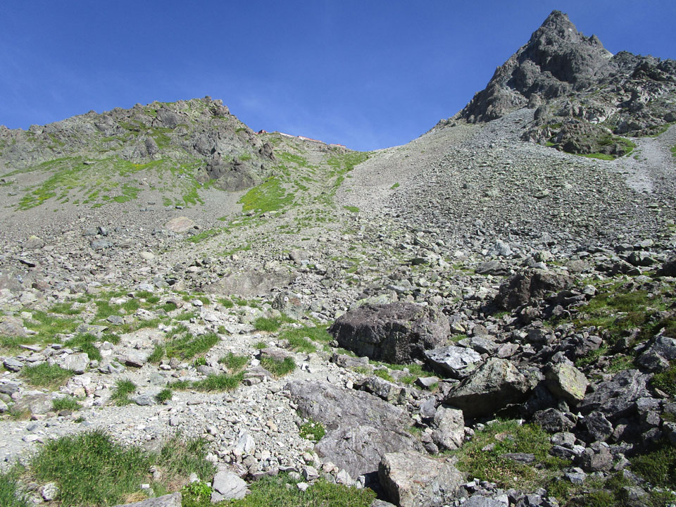 ところが、次の殺生ヒュッテ2860mまでいければ、おおむね山頂泊ということでいいだろう。