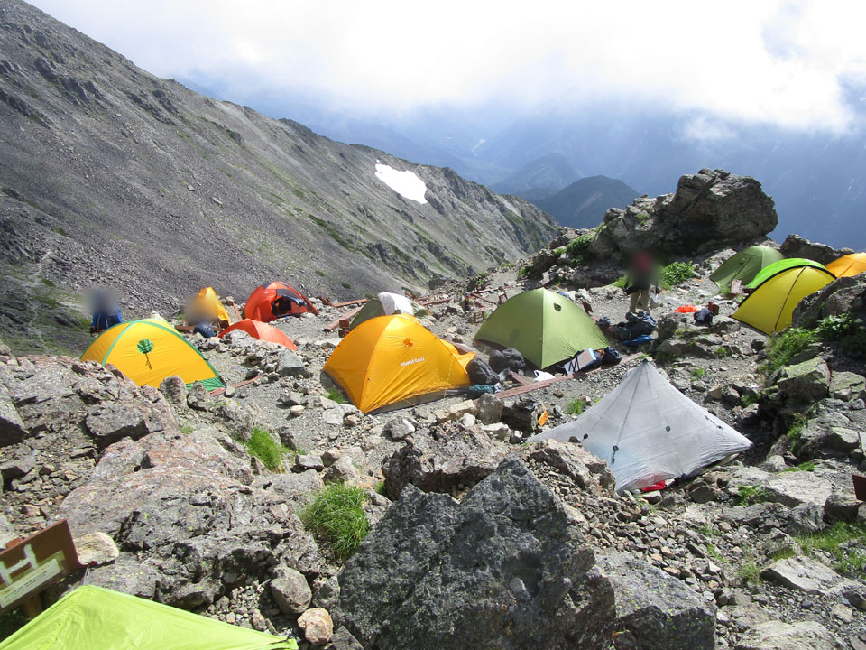 ただし、槍ヶ岳方面に行こうとすると声を掛けられる可能性があるが、テント場から抜けられるという噂だ。