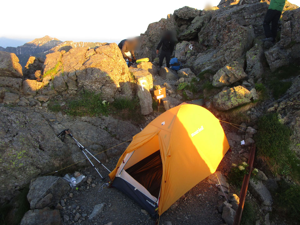 ここも穂高岳山荘テント場に負けず劣らずの絶壁テントサイトだ。