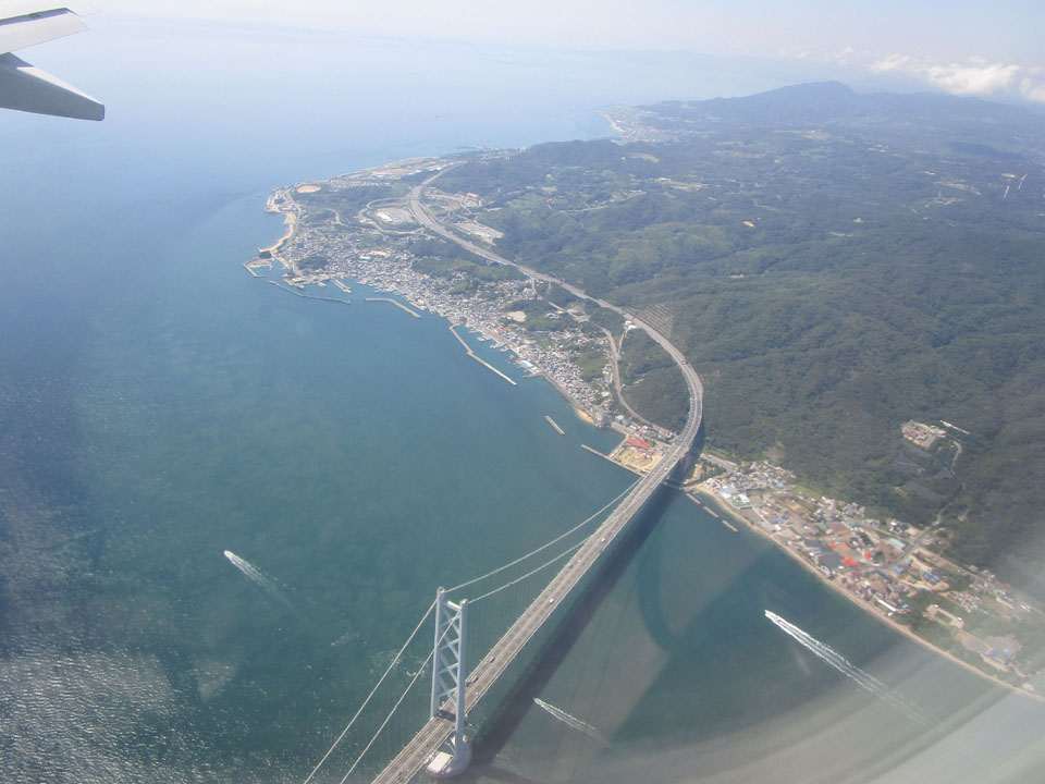 明石海峡大橋の直上をパス。