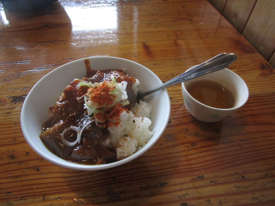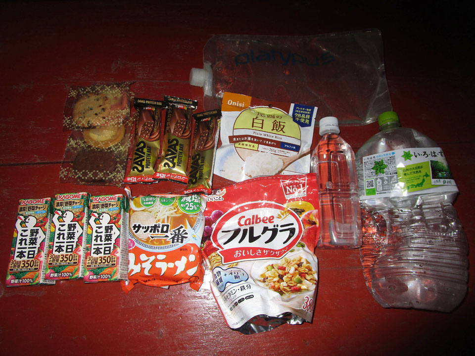 アルファ米を100g持参しており、山小屋で熱湯だけ調達できれば御飯にありつける。