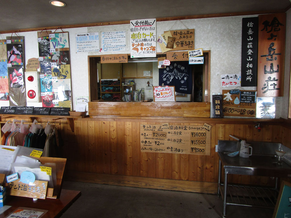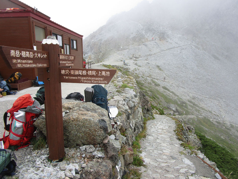 槍ヶ岳山荘の軒先は風雨・日差しが避けられるエリアがあり、ありがたい。